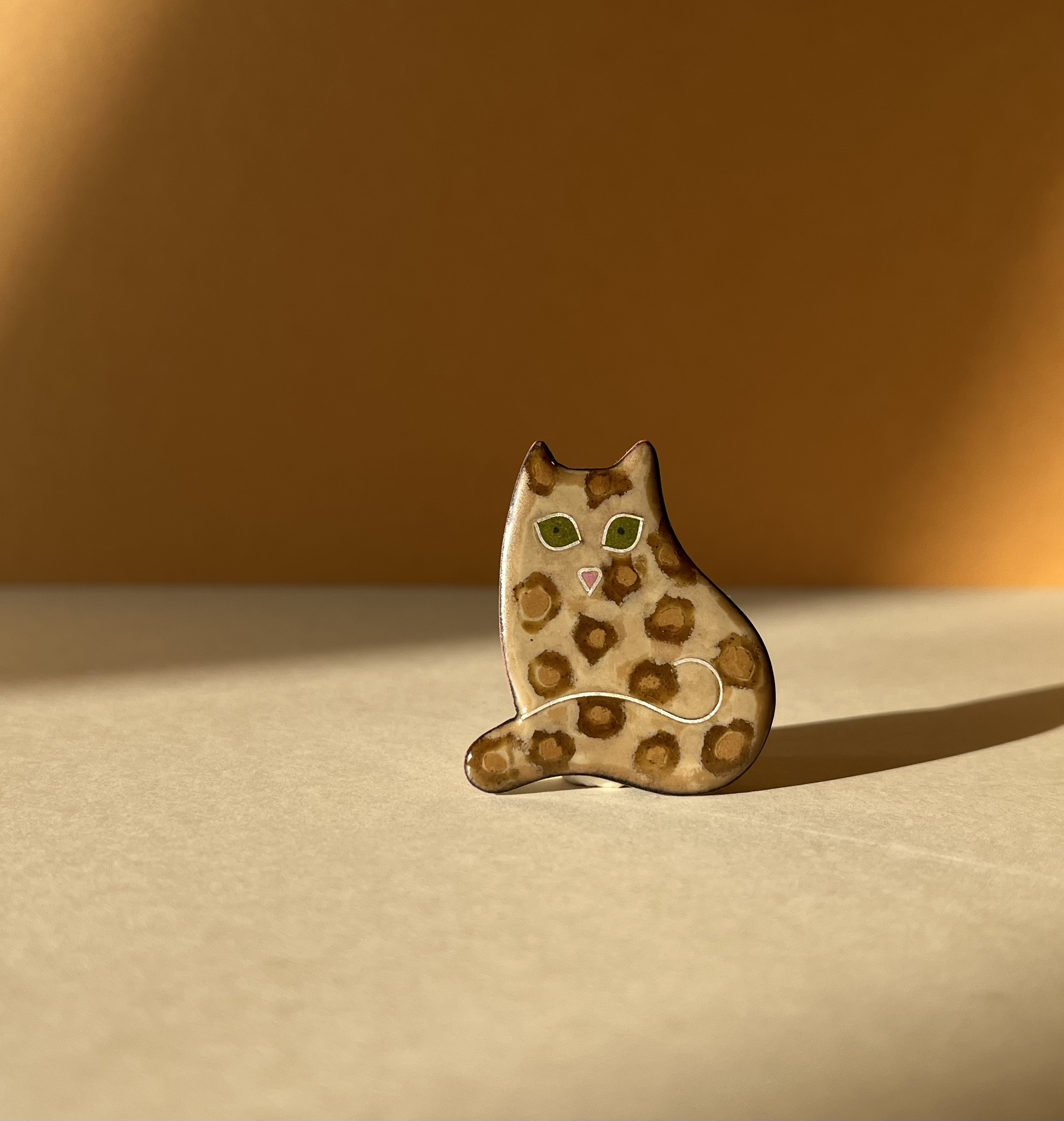 Broche Chat léopard en émaux sur cuivre cloisonnés