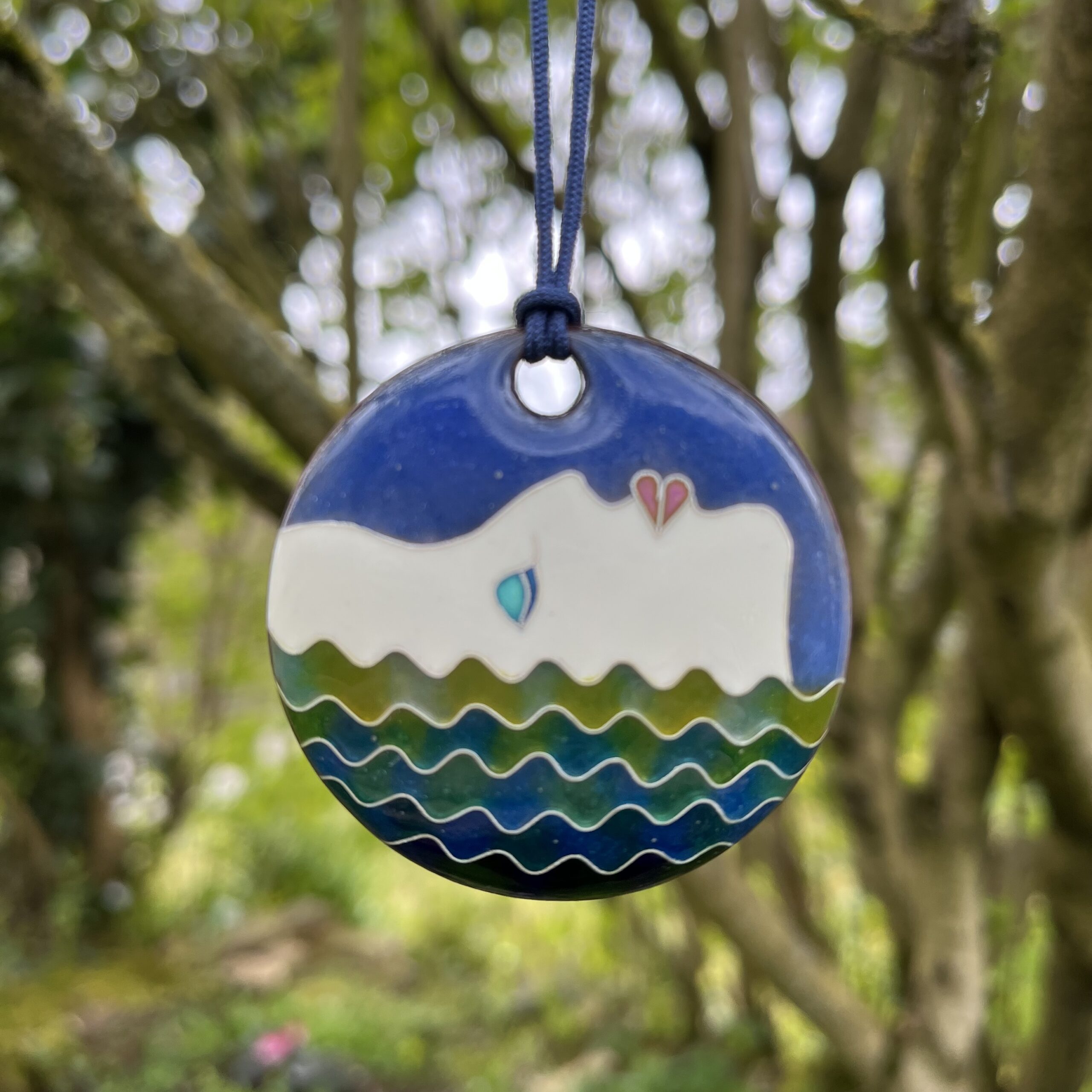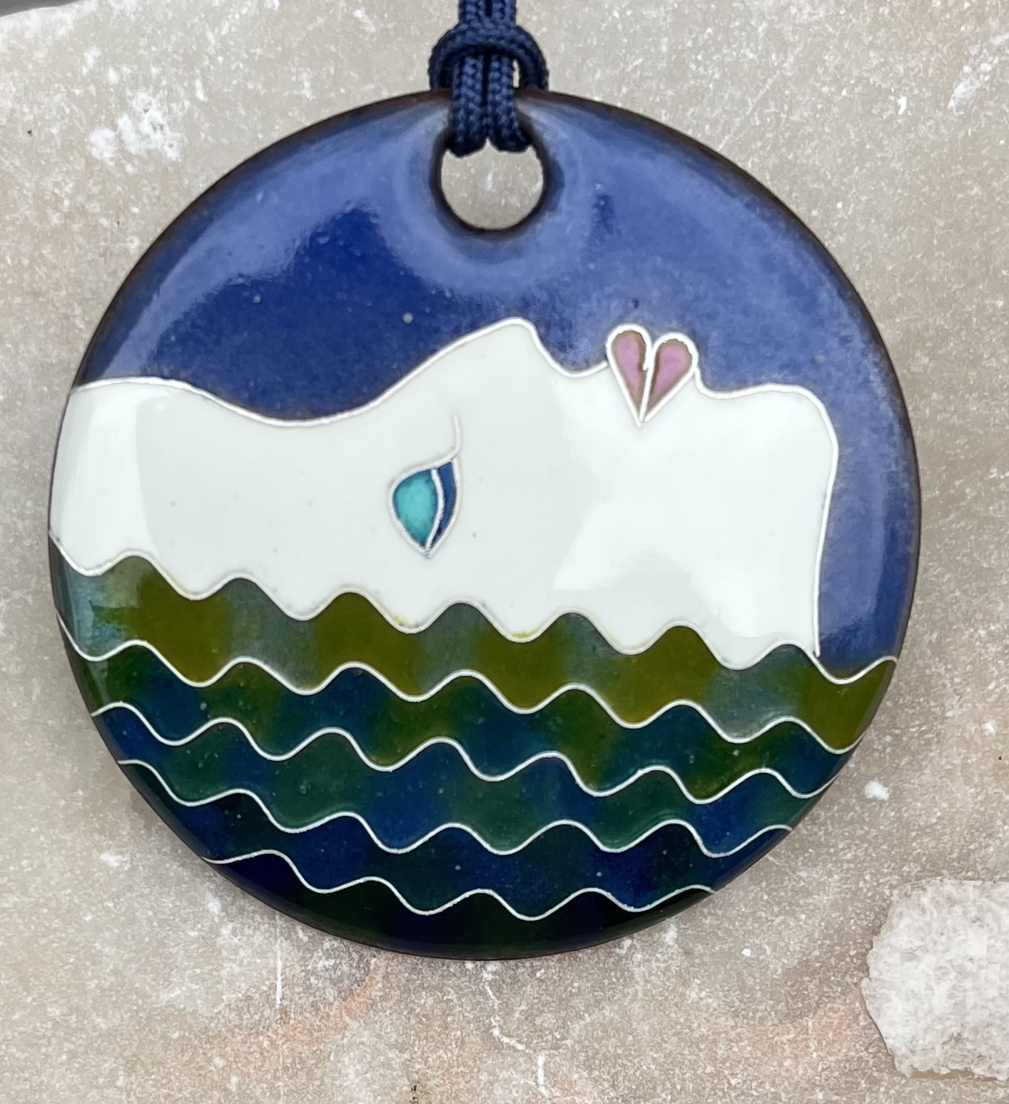 Pendentif  Baignade en émaux sur cuivre cloisonnés