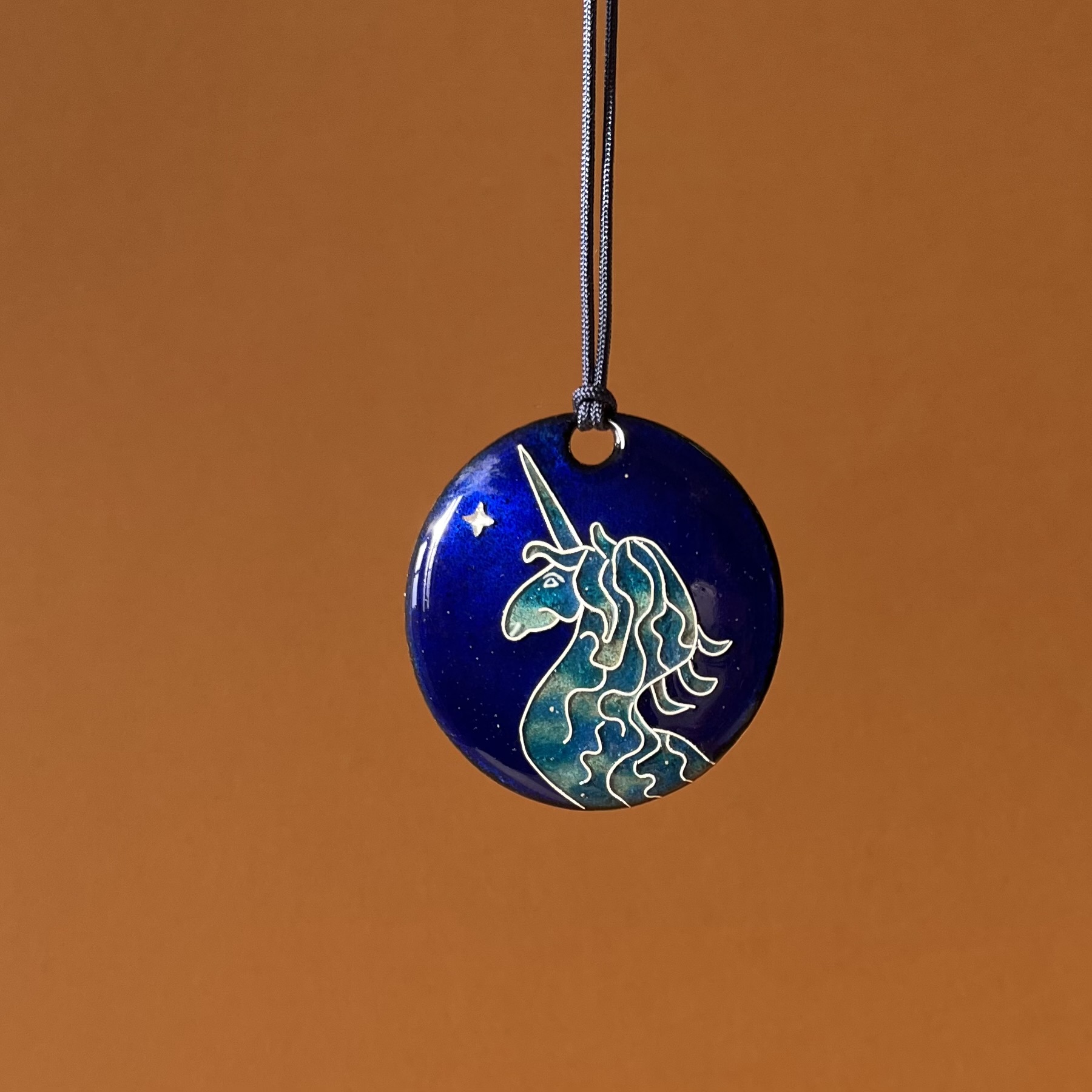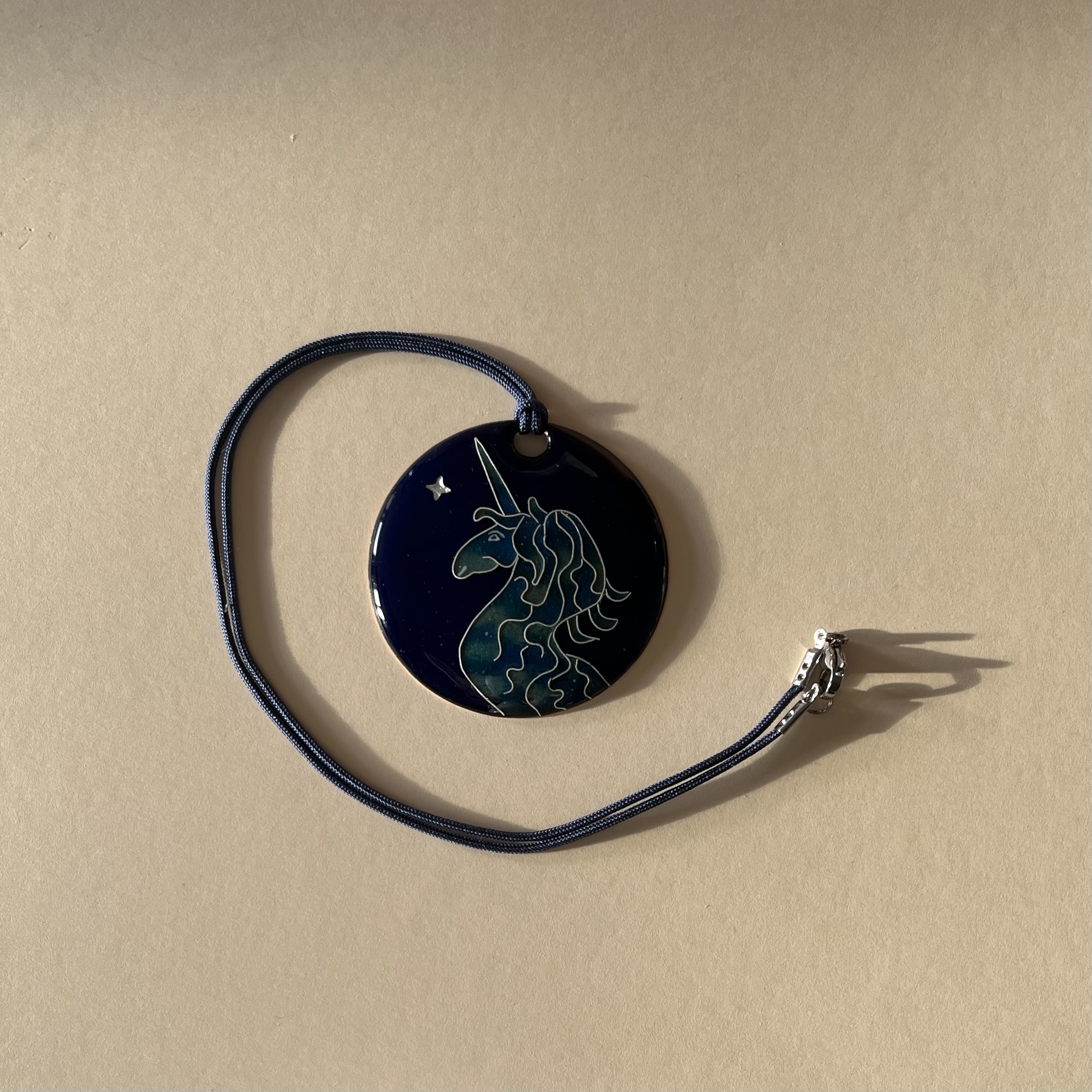 Promenez-vous au pays de la poésie avec ce pendentif orné d’une licorne bleue, symbole d’infini et de contemplation.