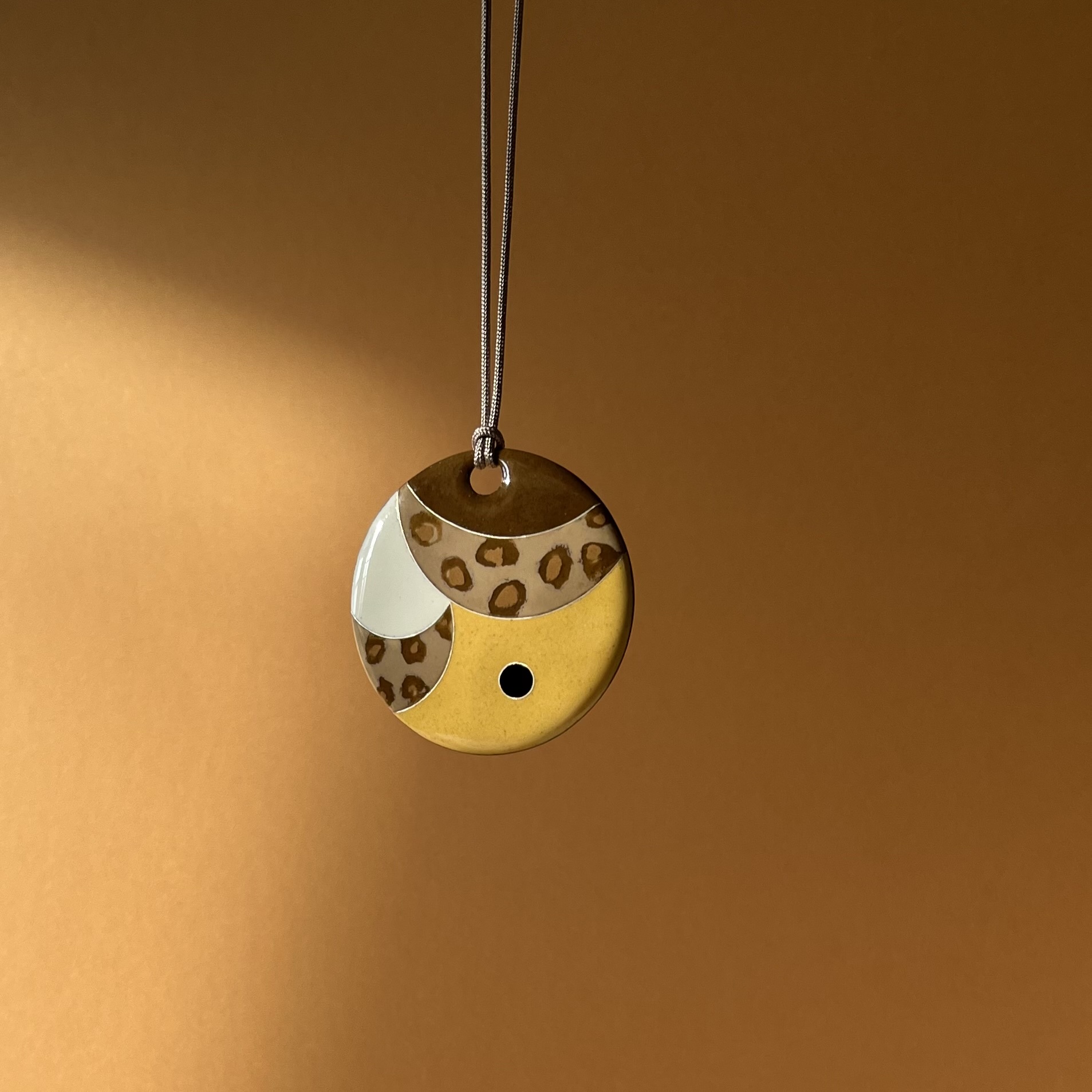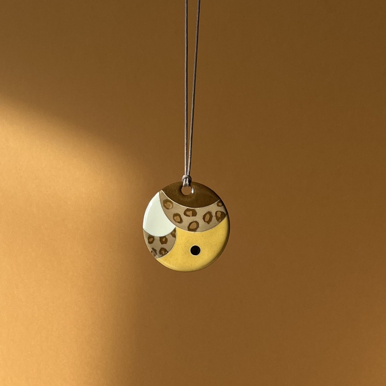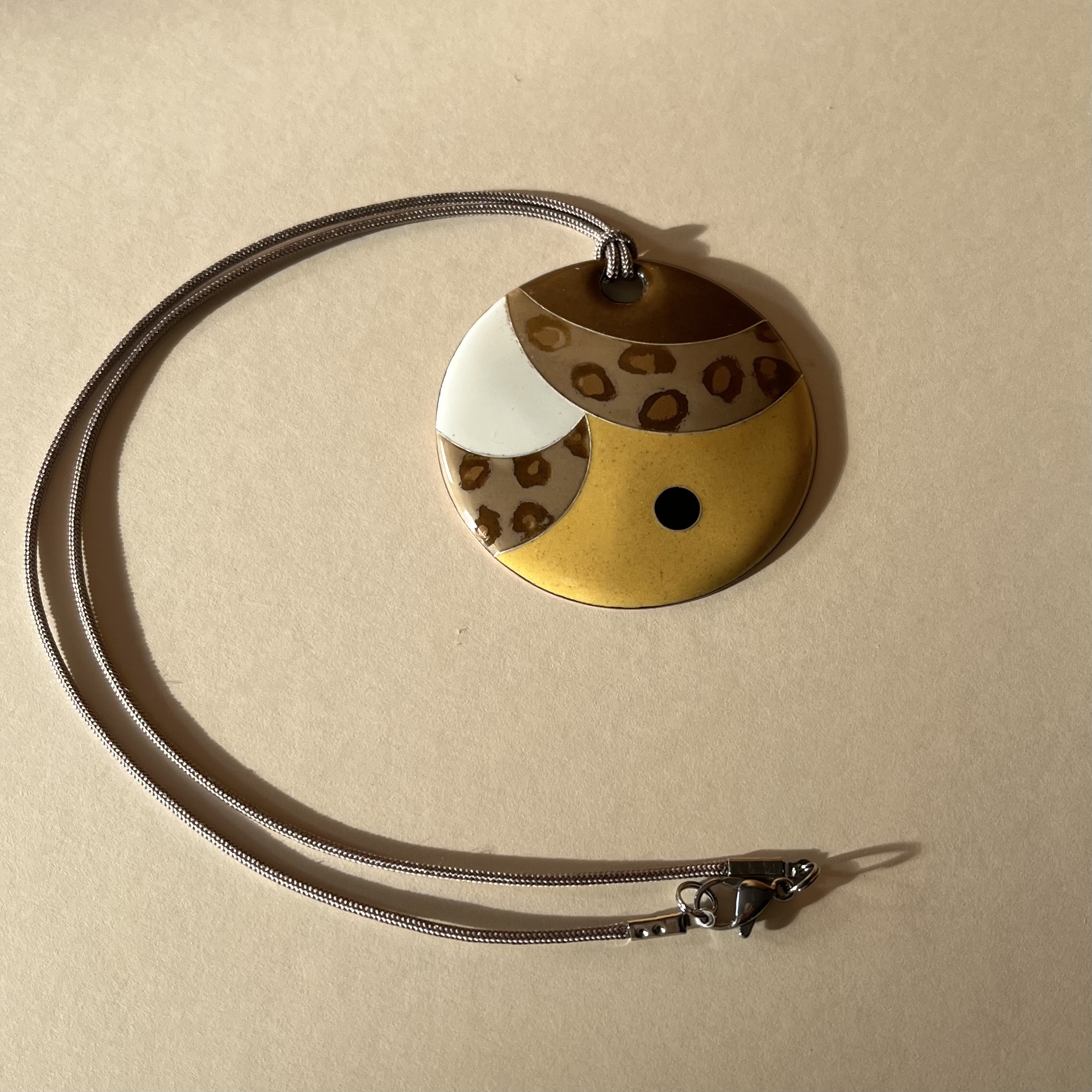 Un pendentif qui vous emmène dans la savane avec son motif léopard et ses couleurs chaudes.